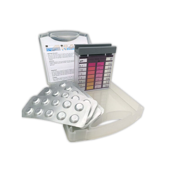 Kit di misurazione di cloro e ph dell’acqua di piscina.